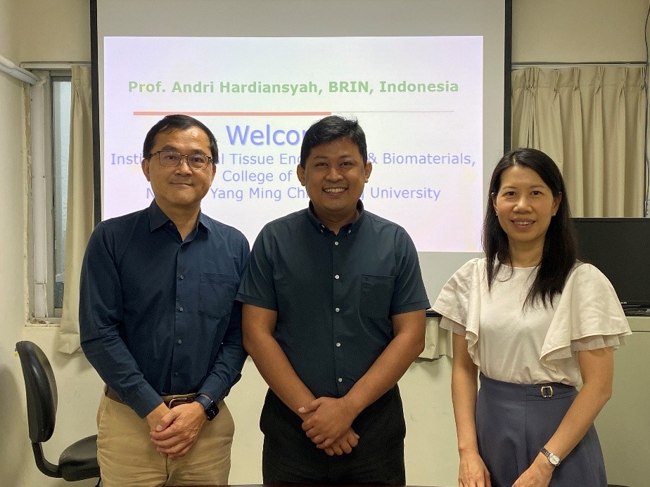 2025年10月21日印尼國家研究與創新處(National Research and Innovation Agency, BRIN) Prof. Andri Hardiansyah來訪生材所,與黃所長及蘇真瑩助理教授討論雙方未來師生學術交流之規劃